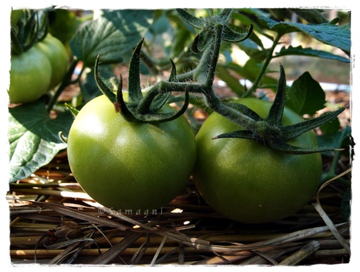 My friend Anjana brought this green tomato pickle to office. Thus began the green tomato movement. Now I am a green tomato pickle propagator!