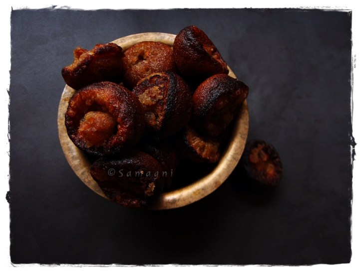 These were totally delish! Crispy and crunchy on the outside and soft on the inside. Unniappams meant to last a week were devoured in a day. Thank you Manju for the recipe and for having made them for me 🙂