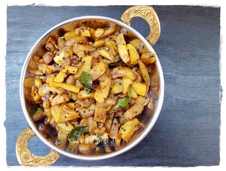 It is koorka season once again. This root vegetable, mostly found in Kerala, is a close cousin of potato, but with much more character and flavor than the mundane potato. Koorka has a very earthy flavor and is very tasty. I prefer cooking koorka using minimal spices so that nothing else overpowers its original flavor and aroma. Hence I do not use any garlic or masalas. Many a times we do not even use shallots/onion but just plain koorka cooked in coconut oil along with mustard seeds and curry leaves. The taste is in retaining the unique koorka flavor.