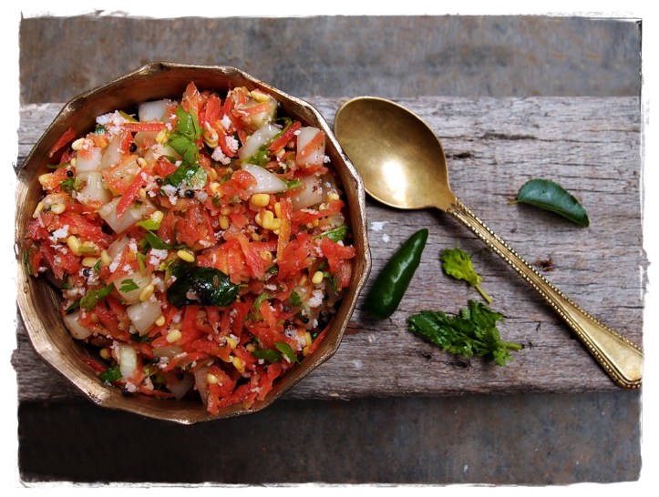 I am happy to skip my afternoon rice lunch or evening dosa and just have a bowl full of this salad. It is so easy to prepare, very delicious, nutritious and filling too. It is a very popular and traditional Karnataka salad. This is also made during Ram Navami celebrations.