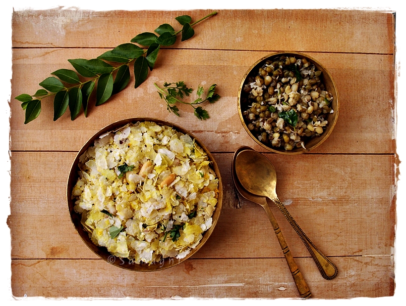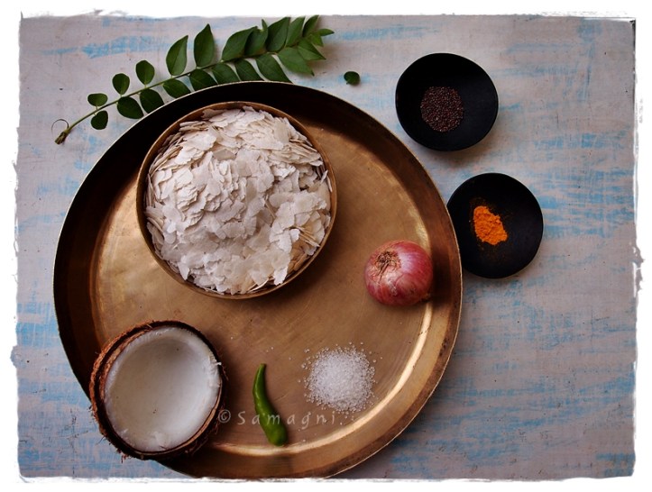 Why maggi when you can cook a wholesome nutritious meal from scratch in less than 10 minutes? Avalakki Upkari is a recipe of coastal Karnataka. I tasted this first and learned about it from my colleague (Yes, the best part of going to office is the lunch time 😀 ). I was completely hooked to the humble yet brilliant taste. A great breakfast or evening snack that is easy to prepare. Probably as fast as maggi but beats maggi in taste and nutrition! Pair it with boiled sprouts and you have a perfect meal. 🙂