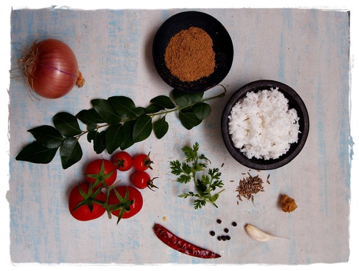 A tangy tomato curry with coconut-based gravy suitable for roti, rice, dosa, or idli. This is similar to the dry tomato onion subzi version posted earlier.