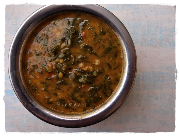A simple and nutritious spinach dal curry that tastes great with both roti and rice. You can prepare this with toor dal, mung dal, masoor dal or a mix of all of these. I cook this at least once a week to ensure regular consumption of greens.