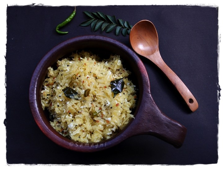 Back home we mostly cook backyard vegetables like mango, jackfruit, raw banana, banana flower and stem, amaranth leaves, drumstick, colocasia, drumstick leaves, etc. Papaya is also commonly found and used often in the kitchen. Papaya thoran (Kerala style dry subzi) is delicious and easy to make and a great side dish to serve along with rice.