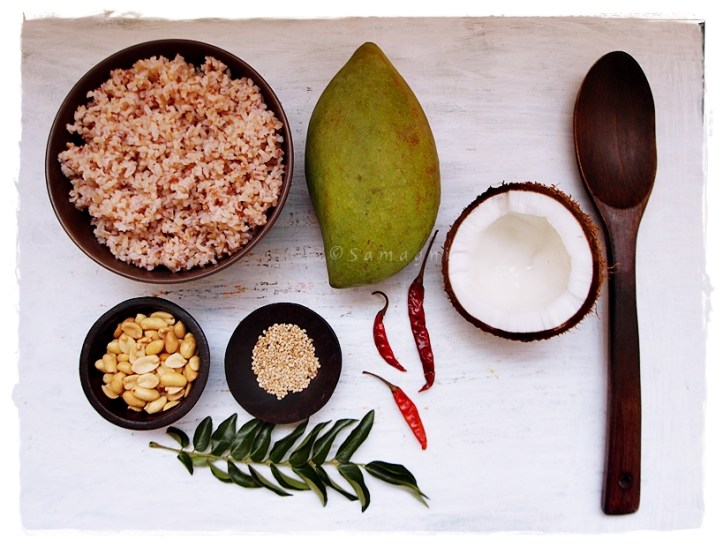4. Instead of grating the raw mango and coconut, you can peel and cut them into chunky pieces and use the mixer to a coarse mixture.