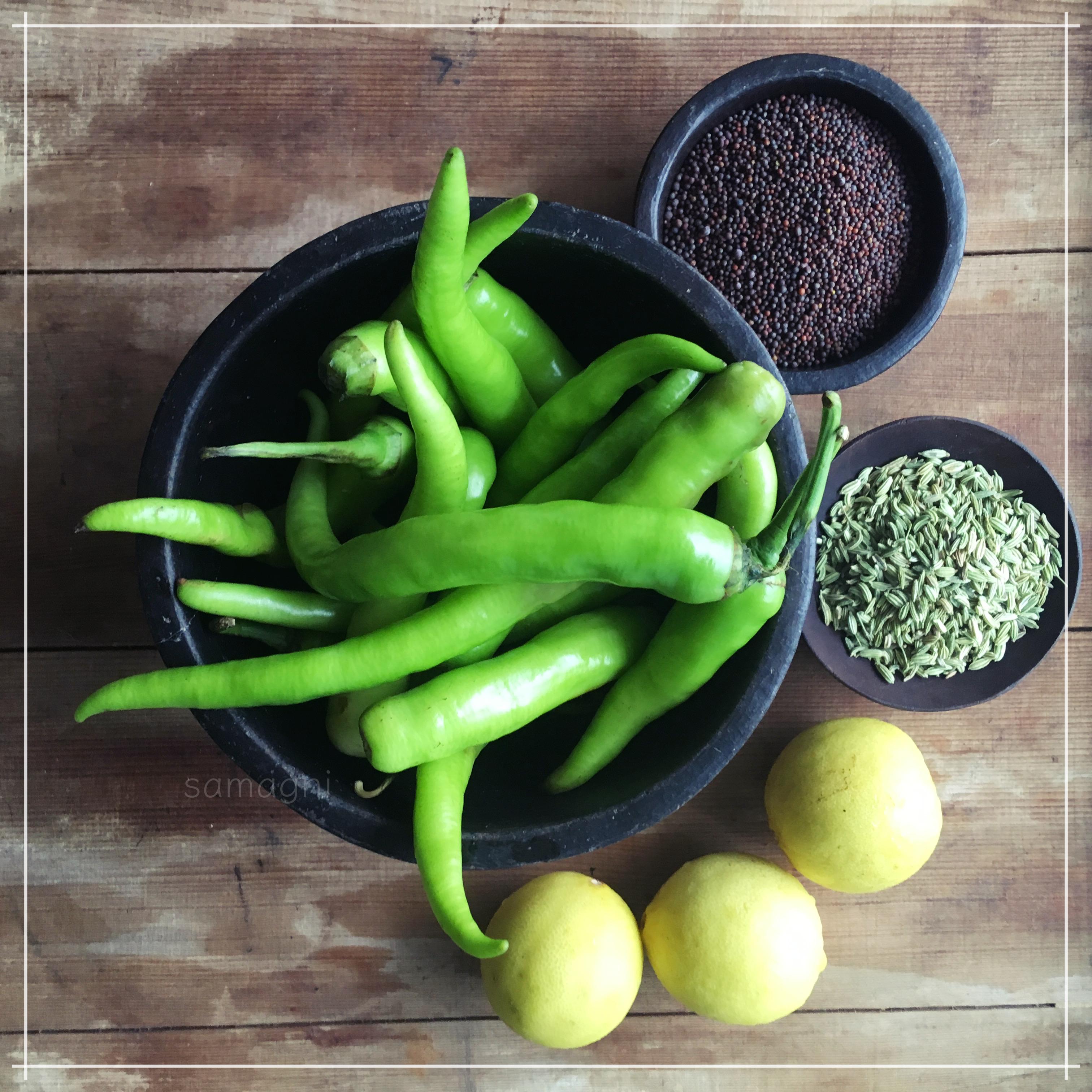 An easy green chili pickle that can be rustled up in less than 10 mins and can be used instantly. Tastes better if you wait until the next day. I used the lighter variety green chilies because I wanted a milder pickle. You may choose the type of green chili that suits your taste.