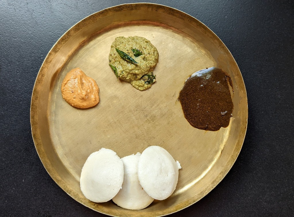 In a pan, heat sesame oil, splutter mustard seeds and curry leaves and add to the chutney. Mix well and serve with dosa and/or idli.